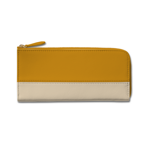 ワンアクションでスムーズに開閉できるL字ファスナー。手に収まりやすいスリムサイズ。真ん中には小銭やレシート入れに使える大きいなポケットがついています。