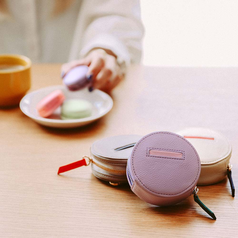 マカロンのようなころんとしたフォルムが特徴的な本革ミニポーチ。ミニサイズでもマチがあるのでちょっとした物をいれるのにぴったり! ユニセックスなデザインで名入れもできるため、プチギフトにもおすすめです