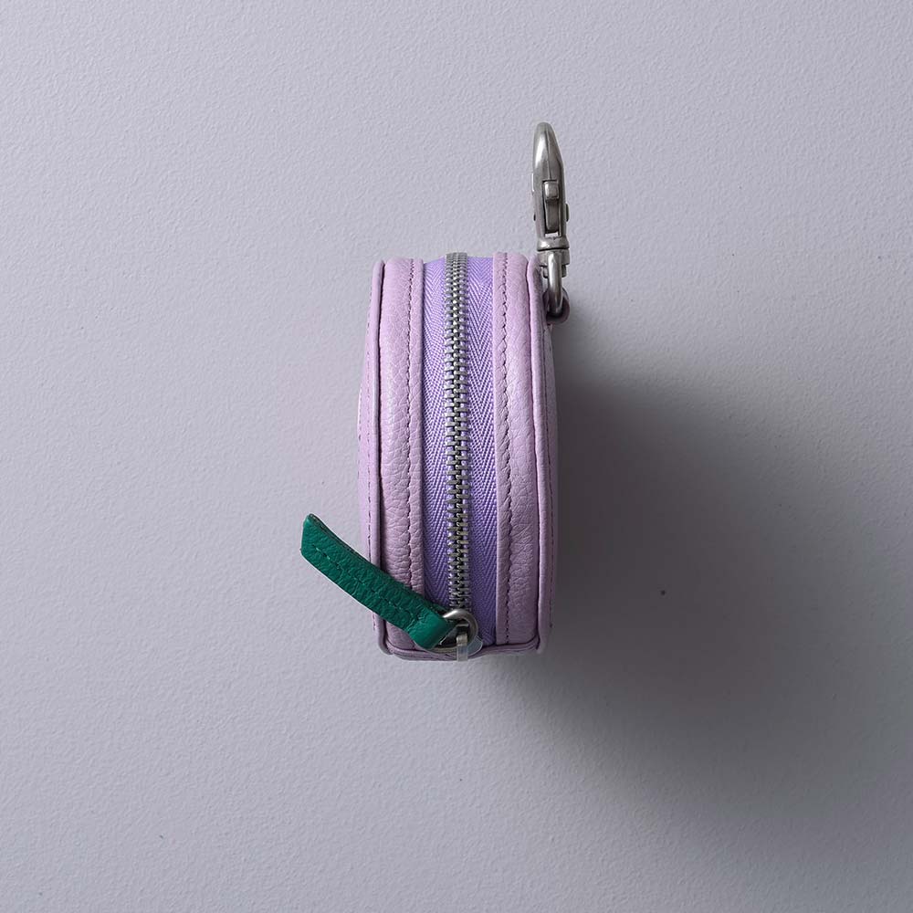 コロンとしたフォルムのマカロンミニポーチ。イヤホンやリップ・小銭などマルチに入れることができます。フックがついているので、ミニバッグなどにつけることが可能。別売りのスマホショルダーバッグにつけるのがおすすめです。容量が少ないバッグで、「あとコレをいれたい!」というときに大活躍。4か所のカラーカスタマイズが可能で、JOGGOでは珍しく外側に名入れを刻印できるのもポイント。ちょっとしたギフトにもぴったりです。